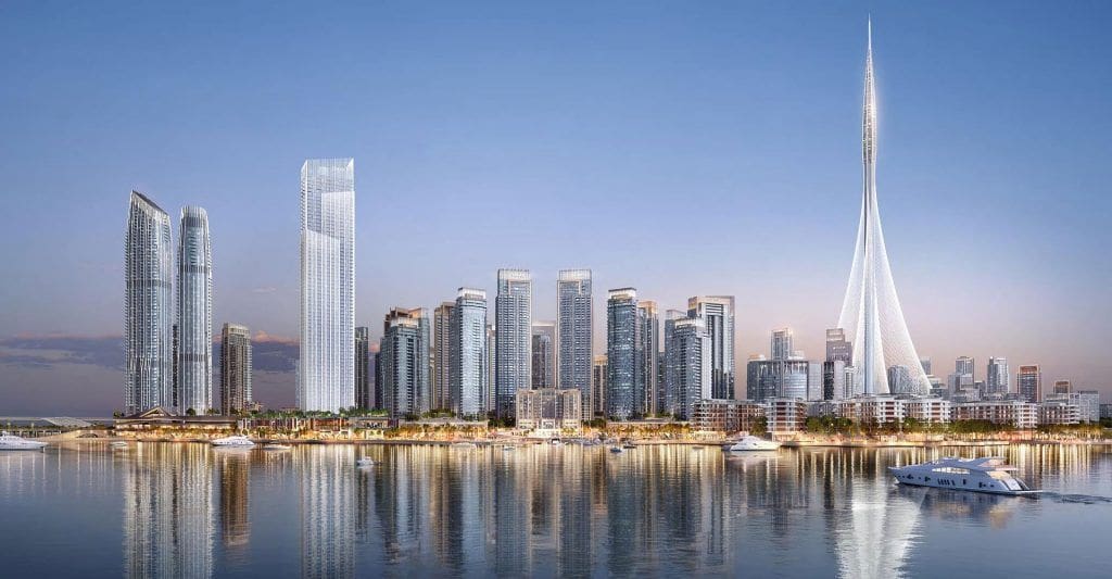 The Grand at Dubai Creek Harbour представляет собой высотный жилой комплекс на 62 этажа, находящийся на этапе активного строительства.