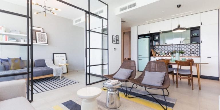Площадь жилых помещений начинается от 44,77 кв. м (482 кв. фт). Стоимость апартаментов с одной спальней стартует от AED 664,888 (USD 181,013).