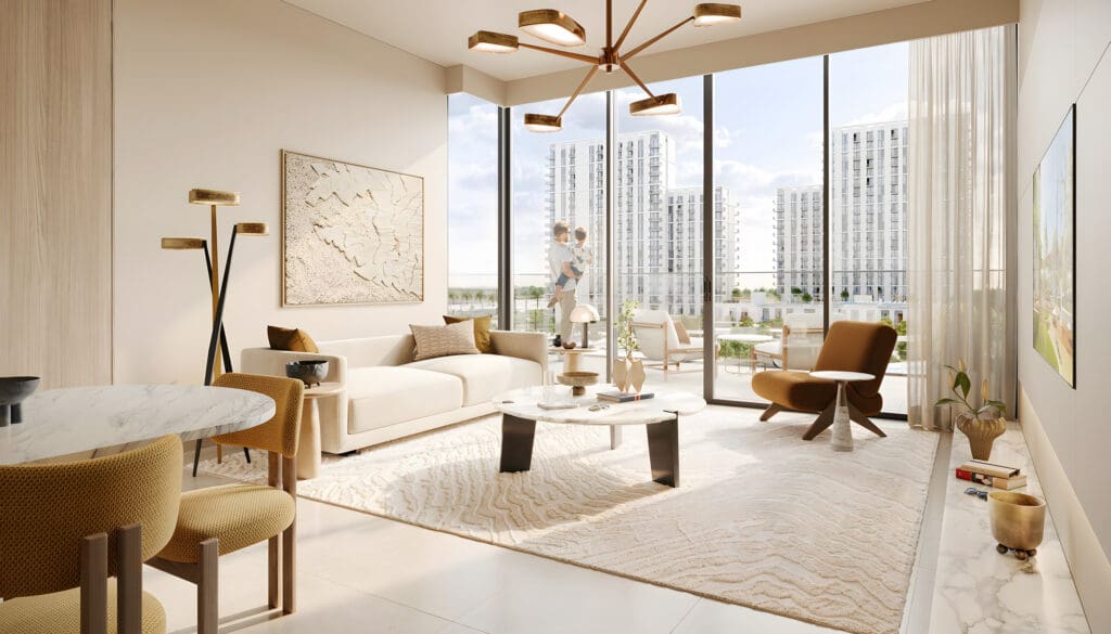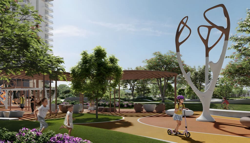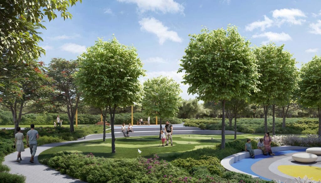 Dubai Hills Estate от Emaar Properties и Meraas Holding славится обилием зелени: здесь есть великолепные сады и обширные открытые пространства. Отличительная особенность комьюнити — элегантный дизайн кварталов. Они расположены вокруг 18-луночного поля для гольфа, что придает району особенную эстетику.