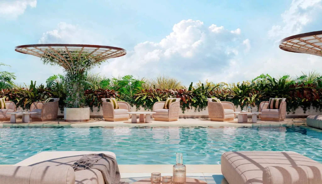 Бассейн на крыше, приватные шатры и ледяная бочка — это эксклюзивный оазис для восстановления и уединения с панорамными видами на побережье.