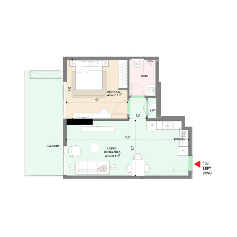 Над архитектурой проекта работают дизайнеры знаменитой студии AYENK из Майами. Помещения будут оформлены в спокойных светлых оттенках, гармонирующих с захватывающими пейзажами — резиденты смогут наслаждаться умиротворяющими видами на море, пляж и живописные окрестности. В комплексе предусмотрена премиальная инфраструктура для отдыха.