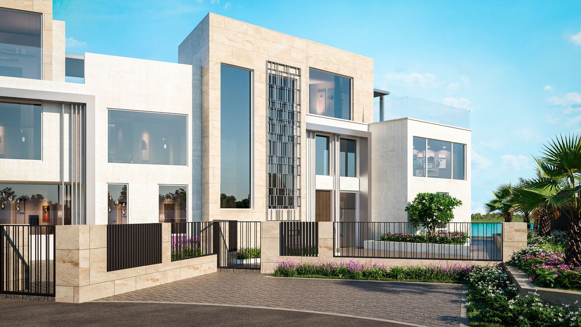 В роскошных виллах будут огромные террасы, крытая и открытая зоны для просмотра ТВ, гостиная, обеденная зона с барбекю, лаундж и терраса на крыше, тренажерный зал, кабинет или офис, помещение для бильярдного стола или пианино и др. В некоторых из них — частный бассейн. Среди особенностей этих резиденций — эксклюзивный ландшафтный дизайн, фасады из травертина с лепниной, детали из металла, машрабии и полы из европейского дерева.