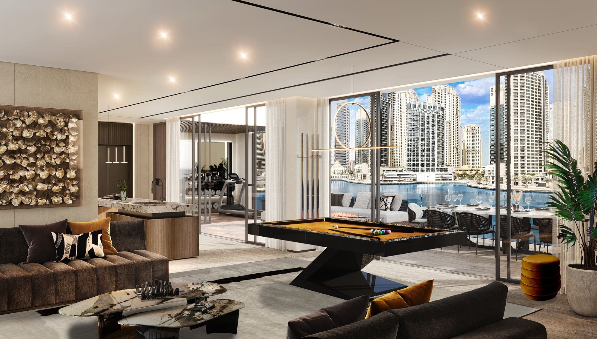 Комплекс LIV Waterside будет окружен сочной зеленью, включая оливковые деревья и пальмы. Резиденты смогут вести роскошную жизнь на набережной и пользоваться множеством премиальных удобств, которые расположатся на трех уровнях. В их числе: