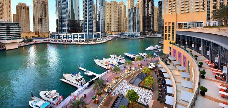 Кафе и бары находятся на популярных набережных Marina Promenade Dubai и Marina Walk.