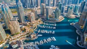 Dubai Marina — один из самых престижных районов Дубая. Его ключевая особенность — большой канал протяженностью более 3,5 км. Вдоль набережной расположены рестораны и кафе, прогулочные зоны, велотреки и беговые дорожки. Район имеет выгодное расположение — отсюда удобно выезжать на Al Sufouh Rd и Sheikh Zayed Rd, которые соединяют все семь эмиратов. До Dubai International Airport и Al Maktoum International Airport можно доехать всего за 30 минут. Также Dubai Marina отличается развитой инфраструктурой — здесь есть все необходимое для жизни: магазины, школы, детские сады и пр.