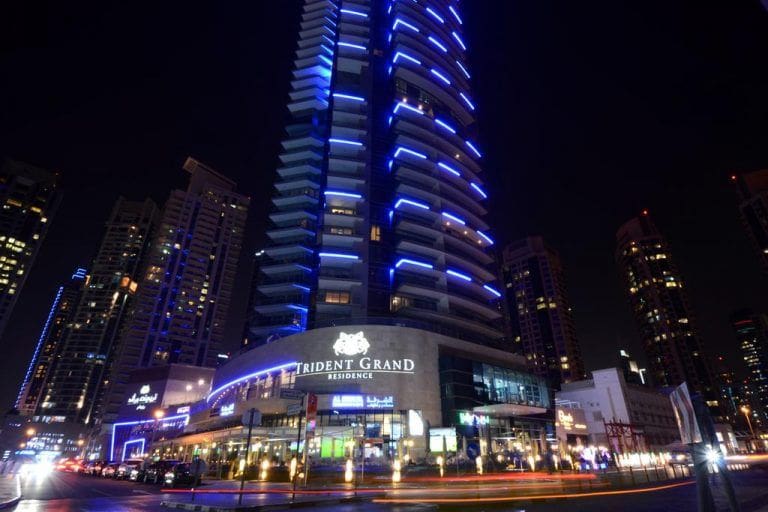 Жилой комплекс Trident Grand Residence расположен в популярном районе города Dubai Marina. Здесь находятся модные клубы и рестораны, торгово-развлекательные центры и магазины. Развитая инфраструктура предполагает близкое расположение образовательных учреждений, специализированных школ с углубленным изучением предметов, детских садов и медицинских клиник.