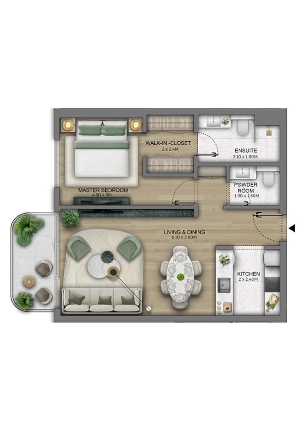 В Sensia представлены апартаменты с 1–3 спальнями, эксклюзивный пентхаус и резиденции из Signature Collection.