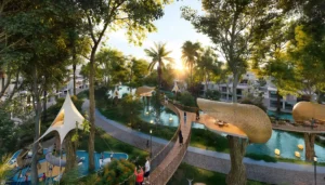 В рамках нового этапа строительства в районе Damac Islands предлагаются таунхаусы с 4–5 спальнями и виллы с 5–7 спальнями, в некоторых планировках предусмотрены спортзалы и комнаты для персонала — всё для жизни класса люкс на «тропическом острове».