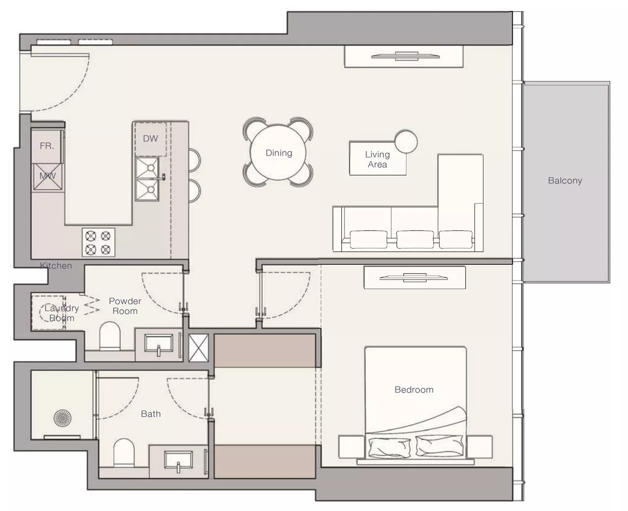 Все резиденции сообщества спроектированы с тщательным вниманием к деталям и будут оснащены фирменной встроенной кухонной техникой, первоклассной отделкой, а также окнами от пола до потолка с живописным видом на горизонт Dubai Marina, Jumeirah Islands. Планировки всех апартаментов будут включать 1 или 2 балкона, прачечную и дамскую комнату. В некоторых резиденциях с 2 спальнями также будет предусмотрена комната для горничной. Недвижимость в Upper House будет оснащена системой домашней автоматизации с мобильным и кнопочным управлением дверью, а также кондиционером и управляемой посредством bluetooth осветительной системой.