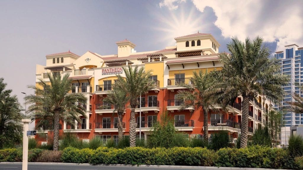 Pantheon Boulevard — жилой комплекс, который расположен в густонаселенном и активно развивающемся районе Jumeirah Village Circle (JVC). Малоэтажное здание отличается стильной архитектурой в классическом стиле.