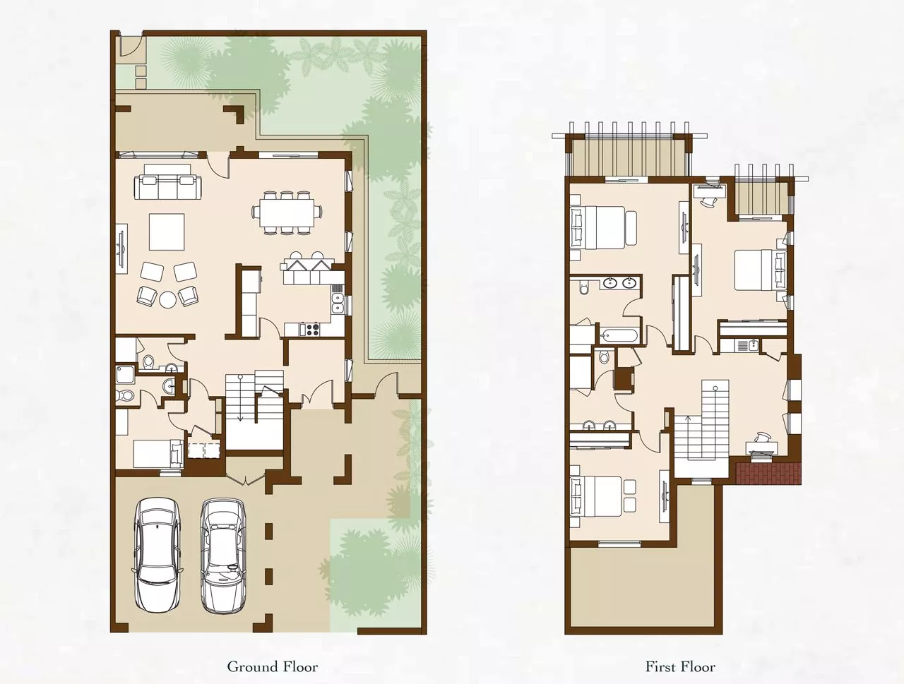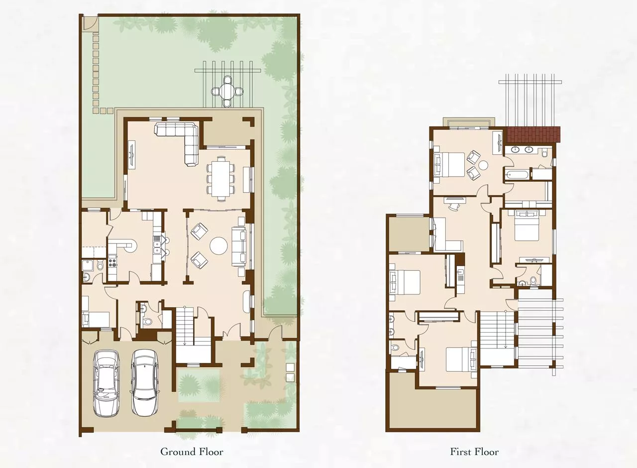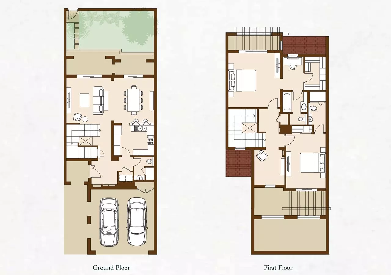 Жилая площадь стильных 2-этажных (G+1) резиденций составляет от 259 кв. м до 440 кв. м. С акцентом на элегантные детали и натуральные материалы, виллы и таунхаусы Mushrif Village располагают комнатами для прислуги, семейной комнатой, частной парковкой и открытым садом.