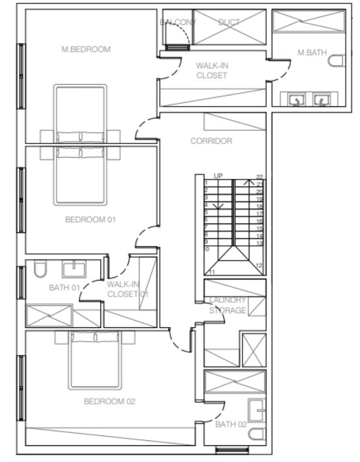 Апартаменты с 1–3 спальнями и дуплексы с четырьмя спальнями.