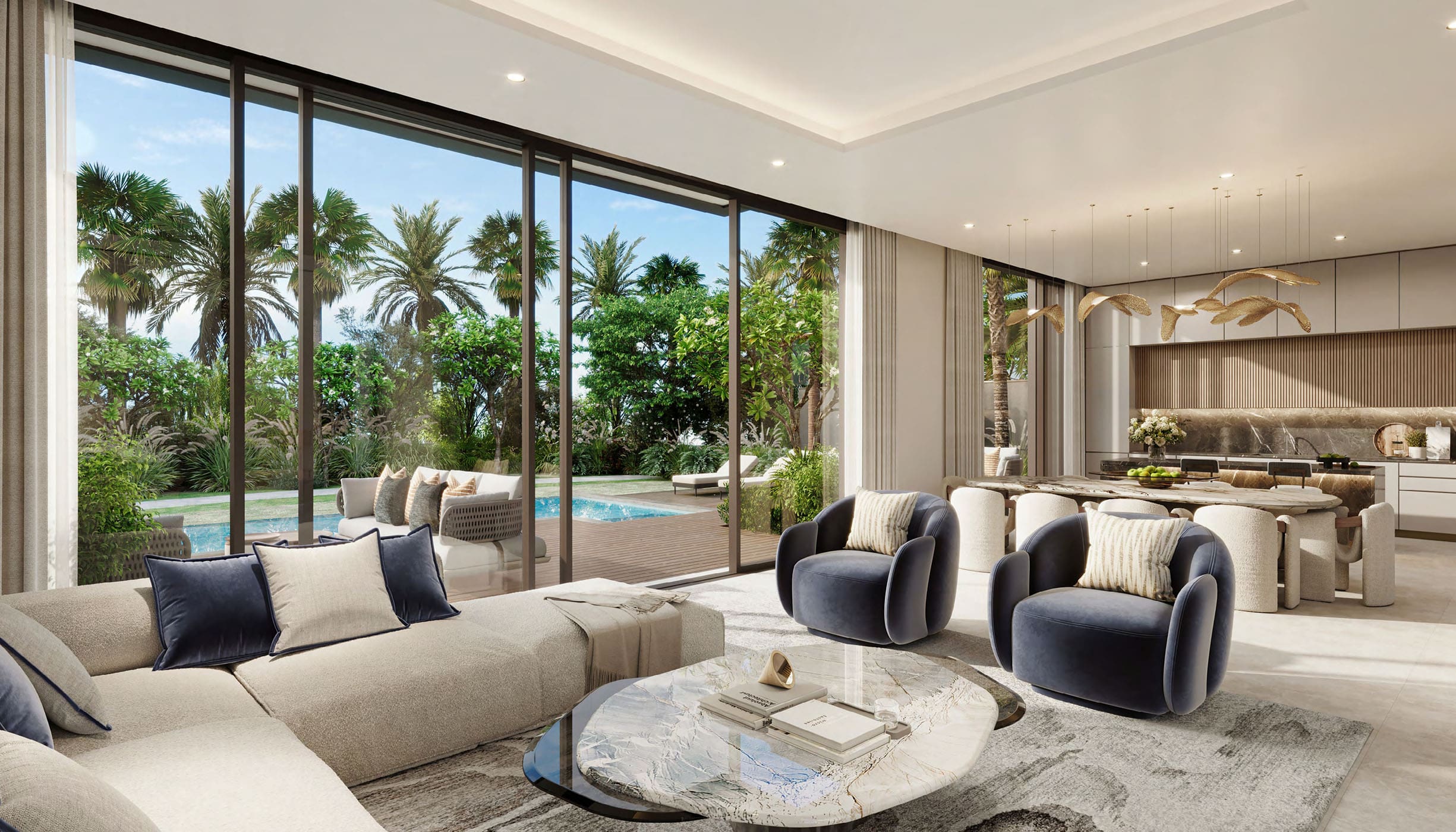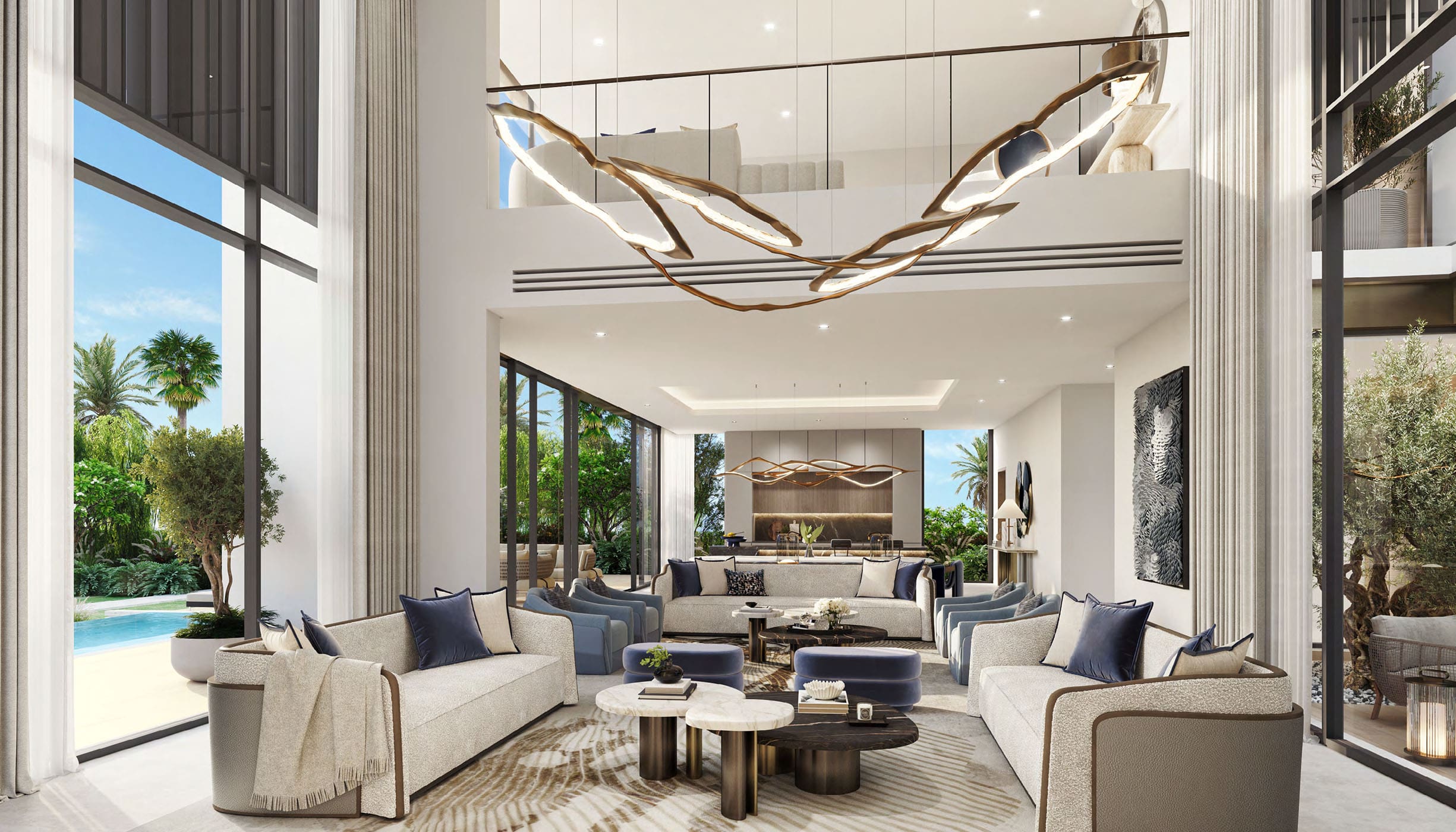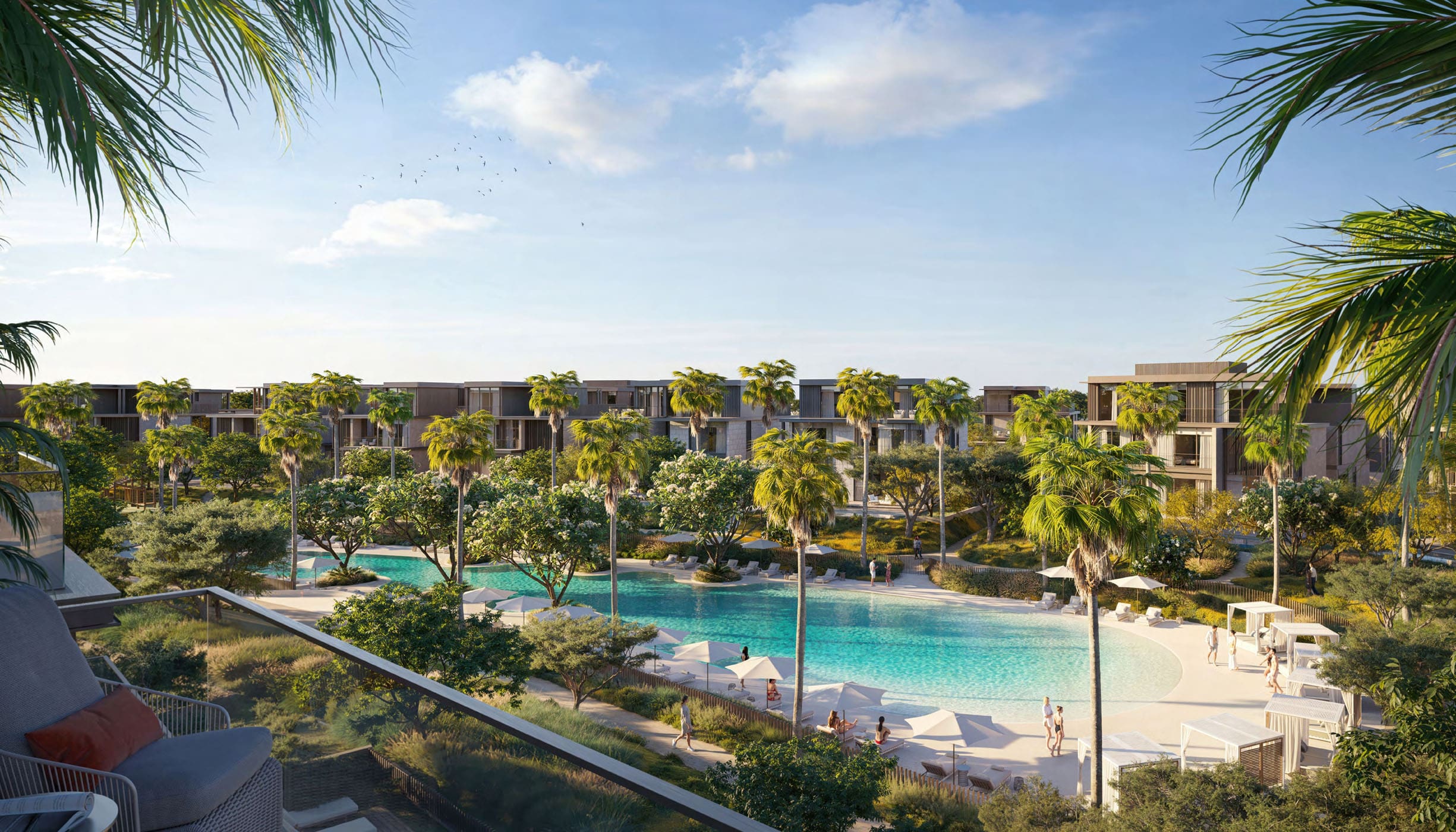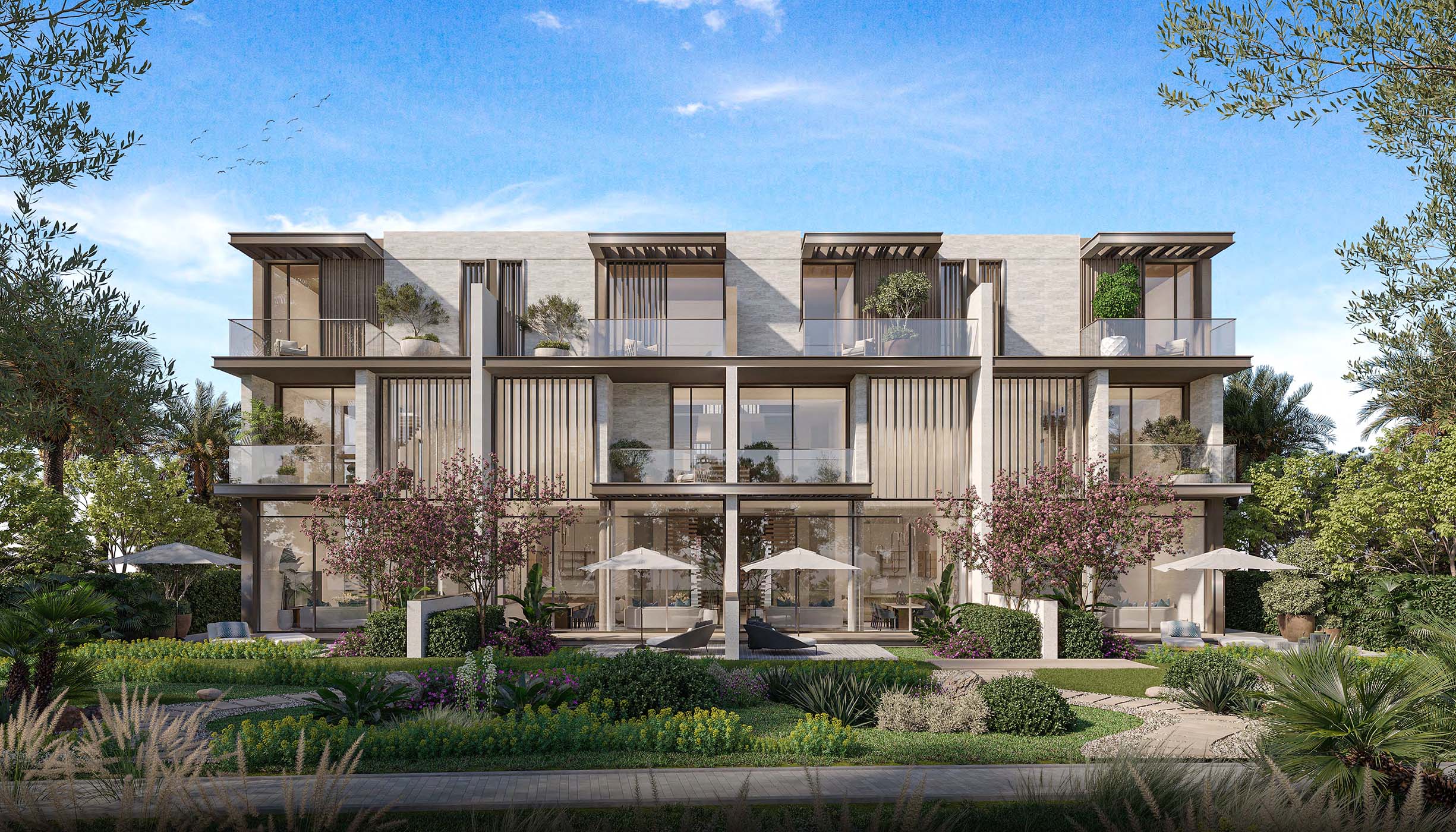 Также здесь можно купить виллы с 3–5 спальнями и таунхаусы с тремя спальнями площадью от 243 кв. м- до 521 кв. м. В резиденциях будут гараж, гардеробная, лифт, прачечная, балконы и комната для персонала. В некоторых объектах будут офисы.