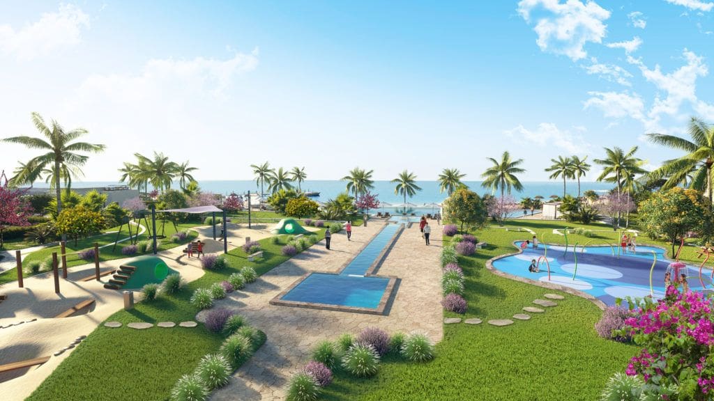 The Beachfront — идеальное место для семейного отдыха. Здесь есть прямой доступ к пляжу, причал, платформа для йоги и многое другое. Летом недвижимость можно сдавать в аренду жителям стран побережья Арабского залива.