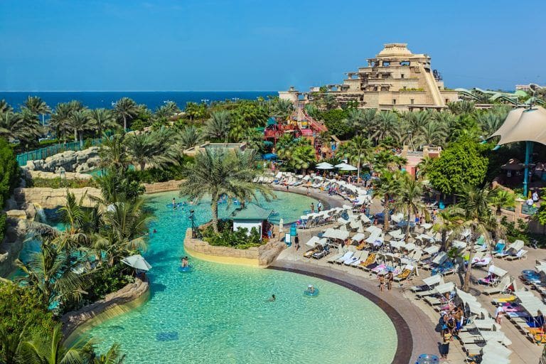 На волнорезе острова Palm Jumeirah находится роскошный тематический Atlantida Park, превосходящий по своим размерам и количеству водных аттракционов свой знаменитый прототип на Багамах. Вокруг волнореза находятся подводные тематические парки для занятий дайвингом.