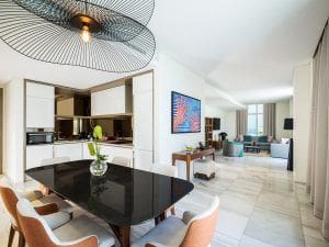 Mansio at Th8 — элитная коллекция полностью меблированных обслуживаемых резиденций от IFA Hotels & Resorts, расположенная на западном полумесяце острова Palm Jumeirah. В общей сложности для покупки доступны 57 апартаментов с 1–3 спальнями, площадь которых варьируется от 78 кв. м до 243 кв. м. Каждая резиденция в Mansio at Th8 оснащена мраморным полом, стильными кухнями с итальянской техникой премиум-класса и панорамными окнами. Также вы сможете насладиться потрясающим видом на горизонт Dubai Marina, Burj Al Arab и Ain Dubai с отдельных террас или балконов.