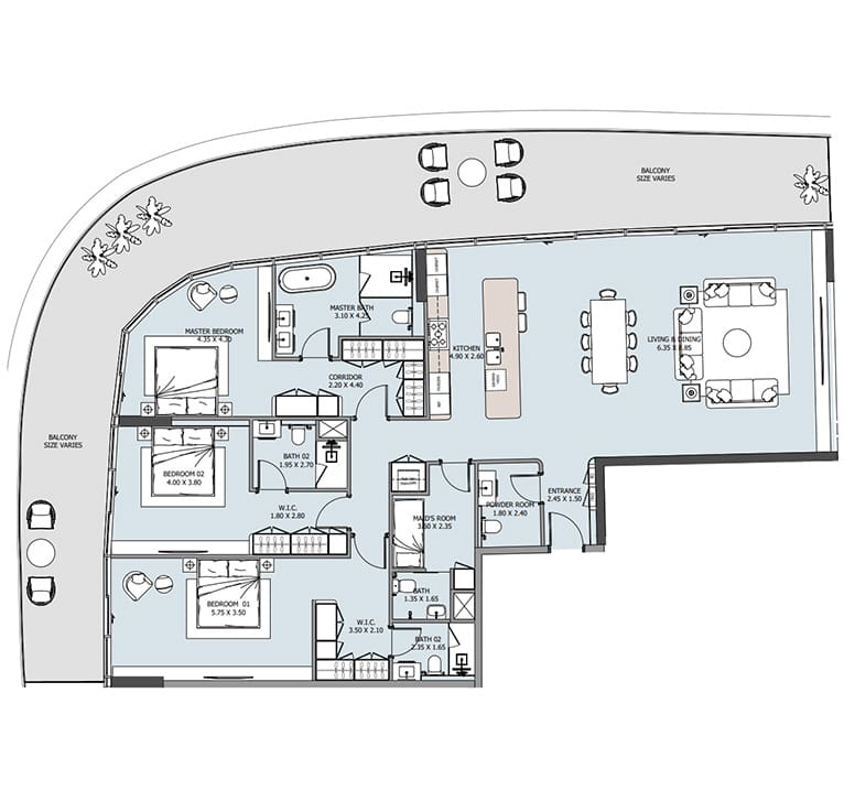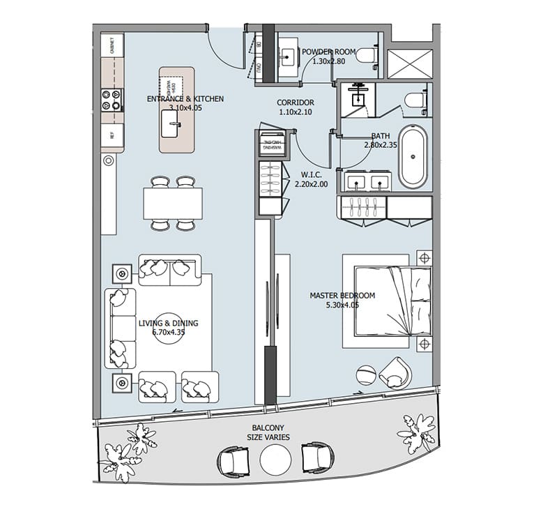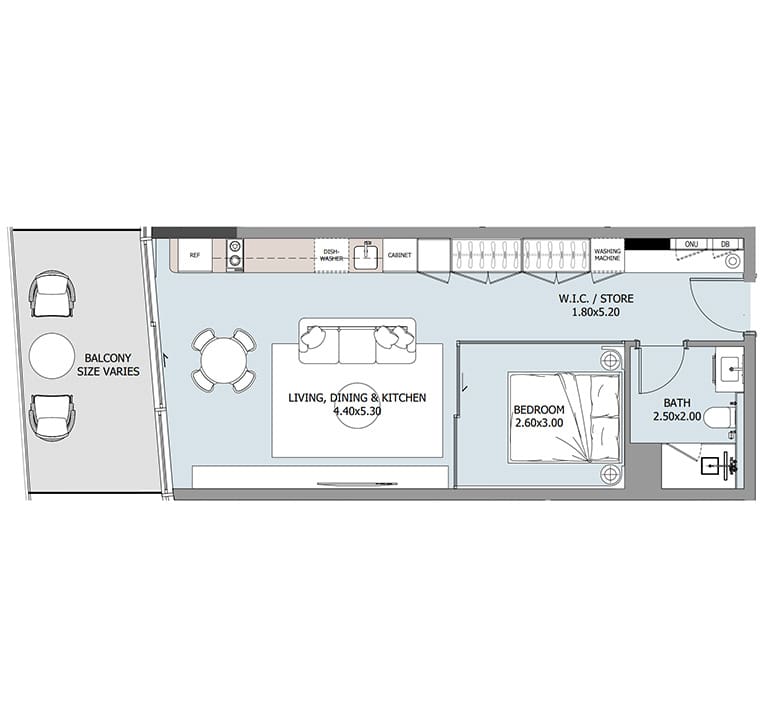 Проект включает элегантные студии, 1-спальные апартаменты Junior и 1–3 спальные апартаменты, включая дуплексы. Цены на 1-спальную недвижимость начинаются от AED 1,39 млн (USD 378 тыс.). Застройщик предлагает несколько вариантов рассрочки: 40/60, 50/50 и 60/40.