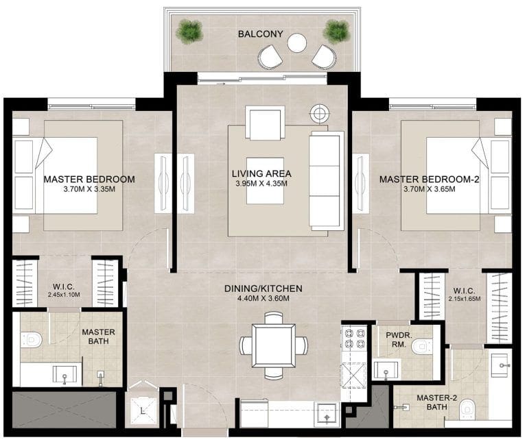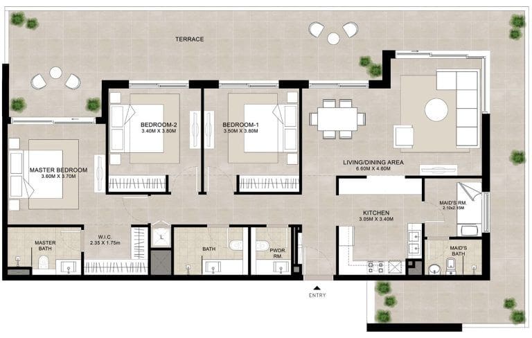 В каждой резиденции будут балкон или терраса, где жители смогут отдохнуть от городской суеты, наслаждаясь видом на зеленые окрестности. Для максимального комфорта владельцев апартаментов с тремя спальнями предусмотрена комната для прислуги.