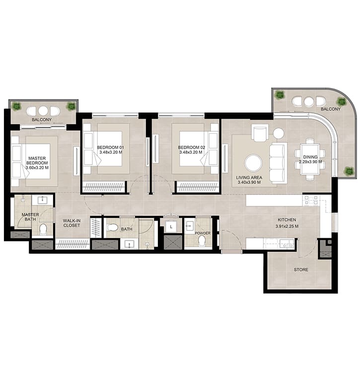 THE BALTIMORE — премиальный жилой проект от NSHAMA, расположенный в спокойном зеленом районе Town Square Dubai. В нем представлены апартаменты с 1–3 спальнями площадью от 61 кв. м до 133 кв. м. В каждой резиденции — балкон и дамская комната, а в апартаментах с тремя спальнями дополнительно будут оборудованы помещения для хранения вещей. Стильный дизайн и премиальная отделка с фарфоровыми полами обеспечат резидентам максимальный уют и комфорт.