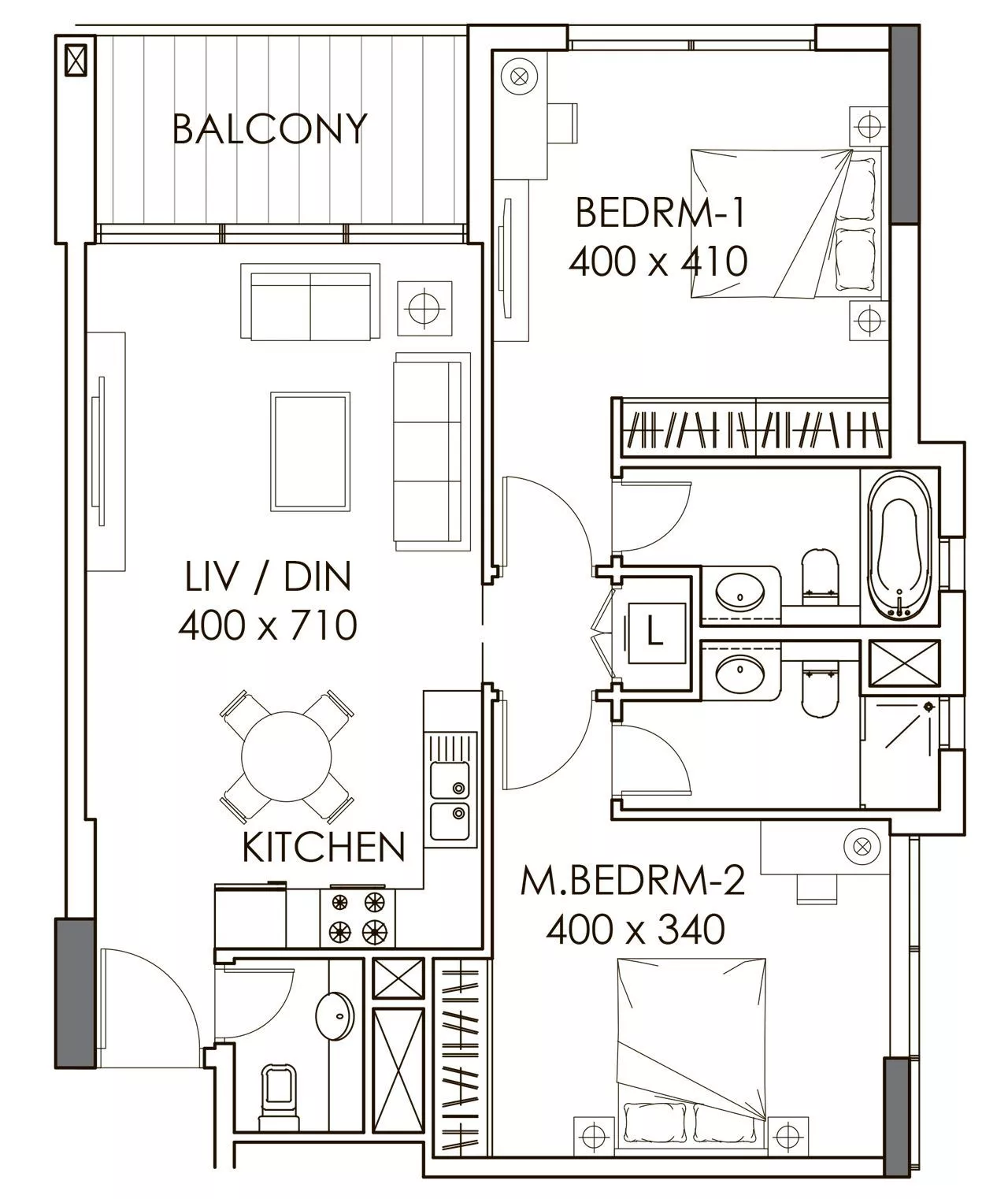 Недвижимость представлена студиями, апартаментами с 1–3 спальнями, таунхаусами и дуплексами с 2 и 3 спальнями, площадью от 40 кв. м до 217 кв. м. Всего в комплексе насчитывается 232 резиденции.