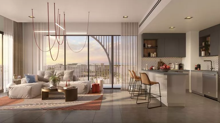In March 2024, the minimum price for a studio in Nouran Living is AED 750K (USD 204K).
