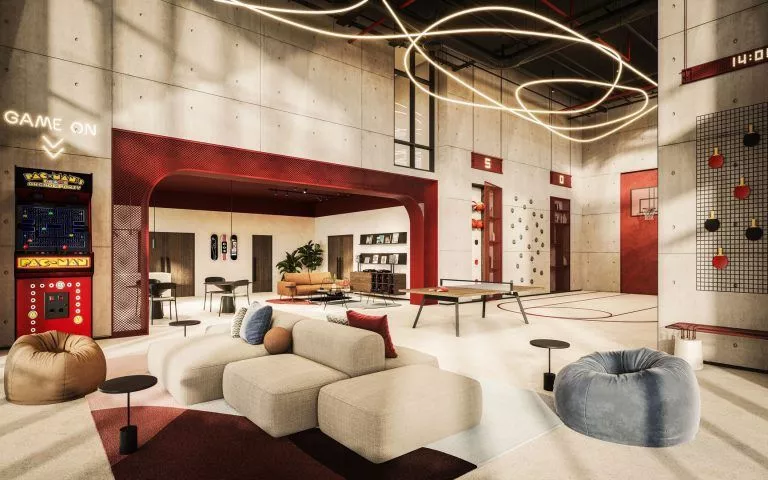 On the ground floor of the building, there is a lobby with a comfortable lounge where you can spend time with friends over coffee. For events, meetings and celebrations, there is a multifunctional room available, and for those who work from home, there is a collab loft. For all the bookworms in the community, a bright and spacious reading room has been carefully designed with your needs in mind.