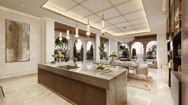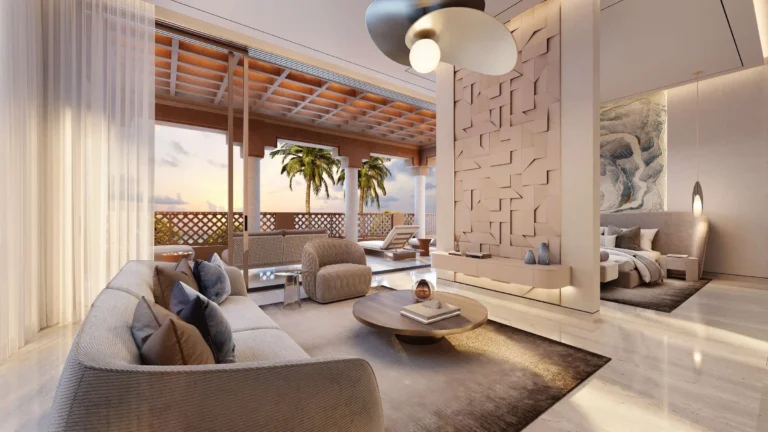 The estate is centred around the Trump International Golf Club, an 18-hole championship course designed to follow the natural valley landscape of Wadi Safar. The club operates as a strictly private members environment with a “no day guests” policy, reinforcing the exclusivity of the estate. Facilities include a cigar lounge, members’ lounge, fine-dining restaurant, signature bar, gym, meeting rooms and a pro shop. Residents are also connected to the Trump International Hotel with five-star dining and entertainment, while a separate arrival route preserves residential privacy.