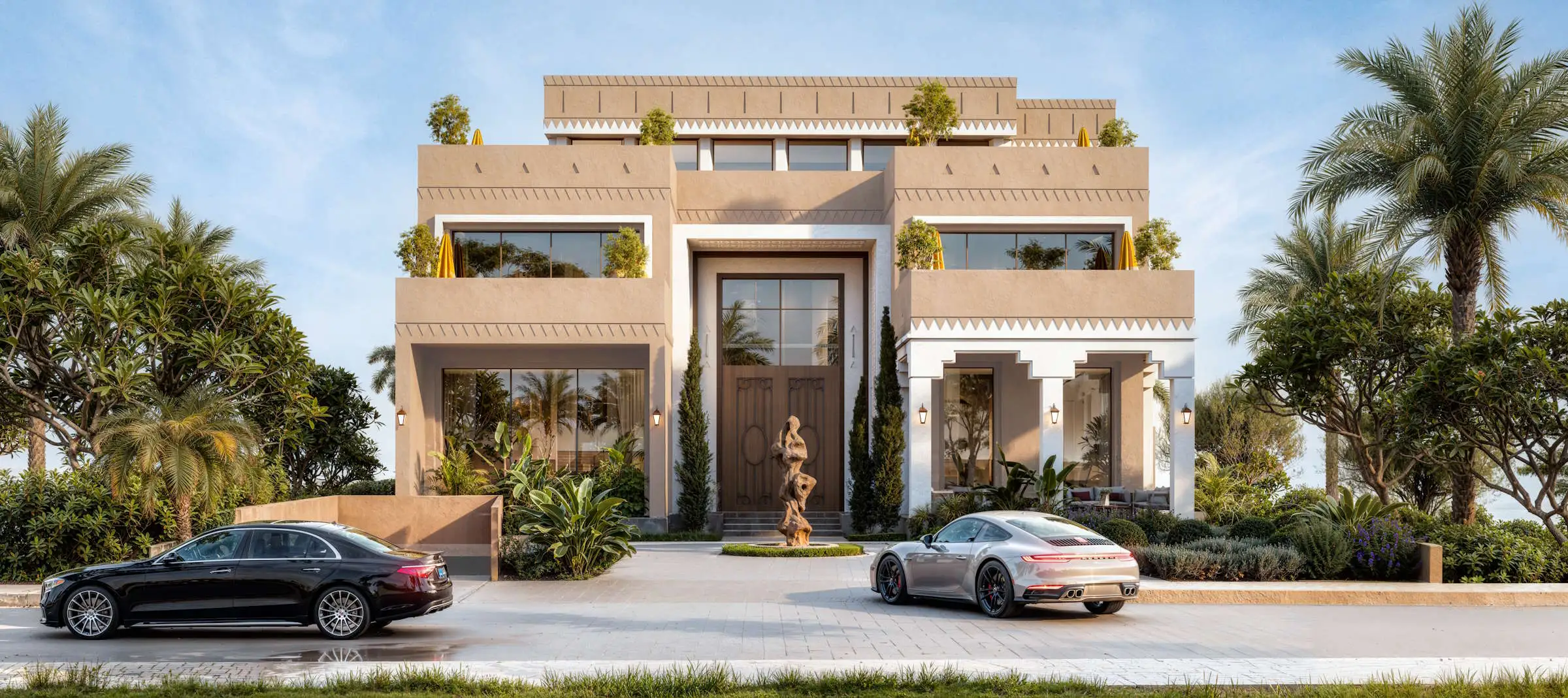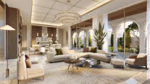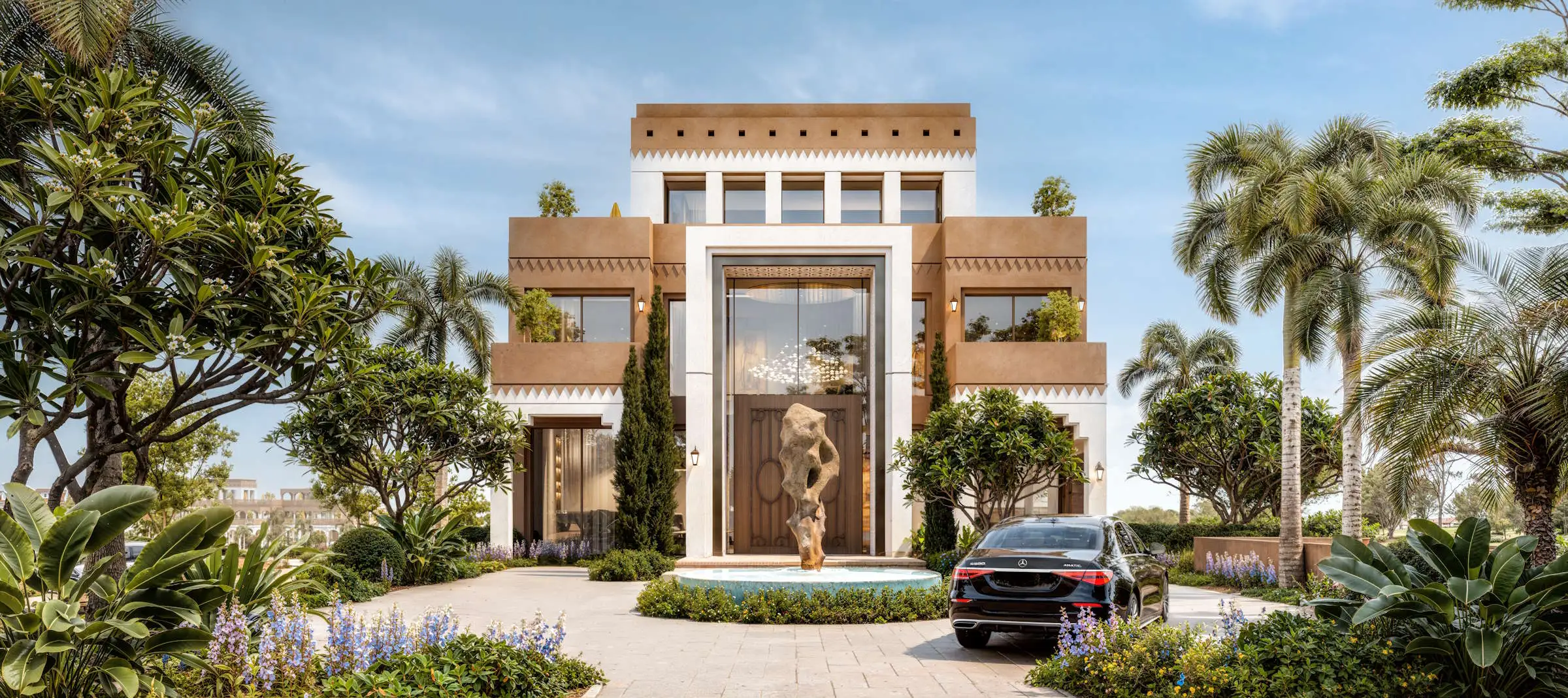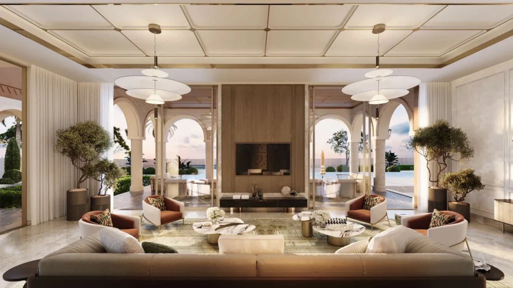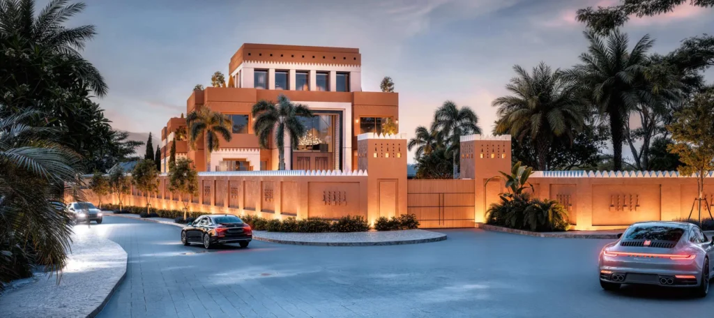 Prices start from approximately SAR 25M (USD 6.66M) for 6BR estates. Final prices depend on mansion type, plot size, views and positioning within the community.