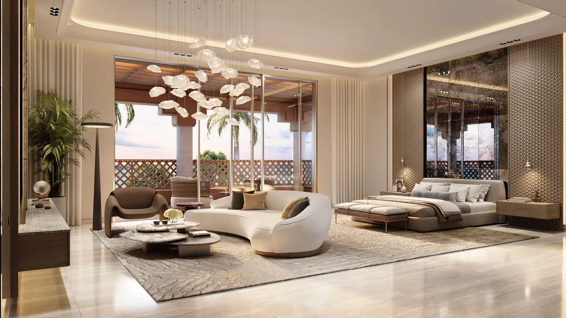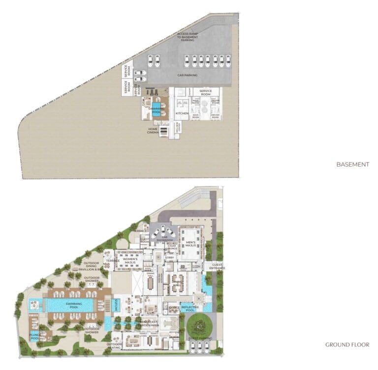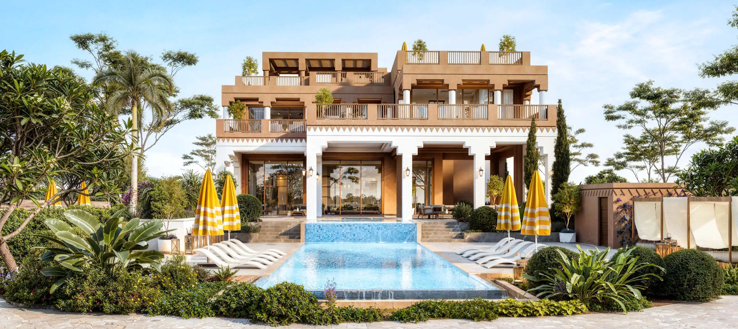 Prices start from approximately SAR 25M (USD 6.66M) for 6BR estates. Final prices depend on mansion type, plot size, views and positioning within the community.