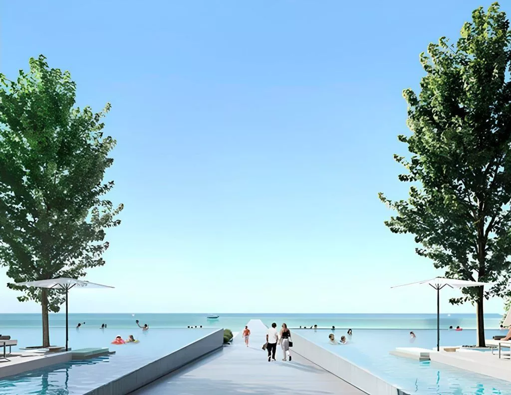 Residents enjoy exclusive access to a private beach and a stunning infinity pool, providing a luxurious seaside living experience.