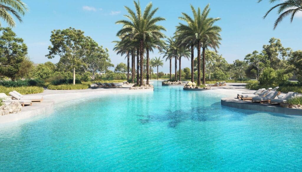 A stunning 55,000 sq. ft aquatic paradise offering residents a resort-style lifestyle with leisure areas and recreational facilities, perfect for family enjoyment and outdoor activities.