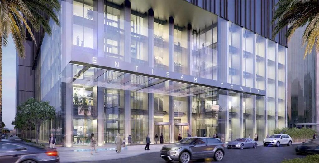 Entisar Tower is a 121-storey mixed-use complex located on Sheikh Zayed Road in Dubai. The building is situated between Park Place Towers, a 56-storey complex, and Radisson Royal Hotel, a 51-storey complex. The project was developed by Meydan Group and offers residents an immersive atmosphere that combines luxury and comfort. The complex has all the necessary conditions to ensure a tranquil living environment. The tower has a height of 1,706 ft. It is more than just a high-rise structure, it is an integrated vertical community that offers an elevated living experience rather than just a place to live.