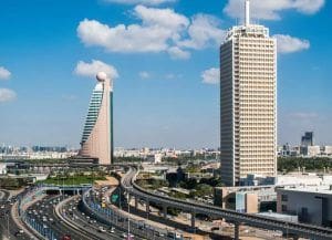 Entisar Tower is a 121-storey mixed-use complex located on Sheikh Zayed Road in Dubai. The building is situated between Park Place Towers, a 56-storey complex, and Radisson Royal Hotel, a 51-storey complex.