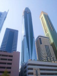 Ghaya Residence is an upscale residential skyscraper located on Sheikh Zayed Road, Dubai. The project was developed by Al Tayer Real Estate, and the building’s construction was completed in 1997. It is one of the city’s tallest residential skyscrapers. Properties include two- to four-bedroom apartments that are available to buy and rent. Units have beautiful polished marble finishes, balconies with stunning views of the surrounding area, and spacious kitchens with modern appliances. Apartments also feature large built-in wardrobes, bathrooms with huge bathtubs and showers, small pantries, laundry areas, and staff accommodations.