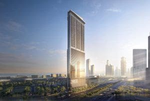 Paramount Tower Hotel and Residences is a 64-storey building that combines a residential tower and a luxury hotel. It was developed by DAMAC Properties and has a total of 826 residential properties. Floors 15 through 25 feature one-bedroom hotel rooms ranging in size from 843 sq. ft (78 sq. m) to 1,048 sq. ft (97 sq. m). Two-bedroom units can also be purchased and have a minimum size of 1,369 sq. ft (127 sq. m). Properties include a home theatre with access to Paramount’s movie library. Floors 26 through 63 feature residential studios and one- to three-bedroom apartments. Units range in size from 520 sq. ft (48 sq. m) to 1,477 sq.