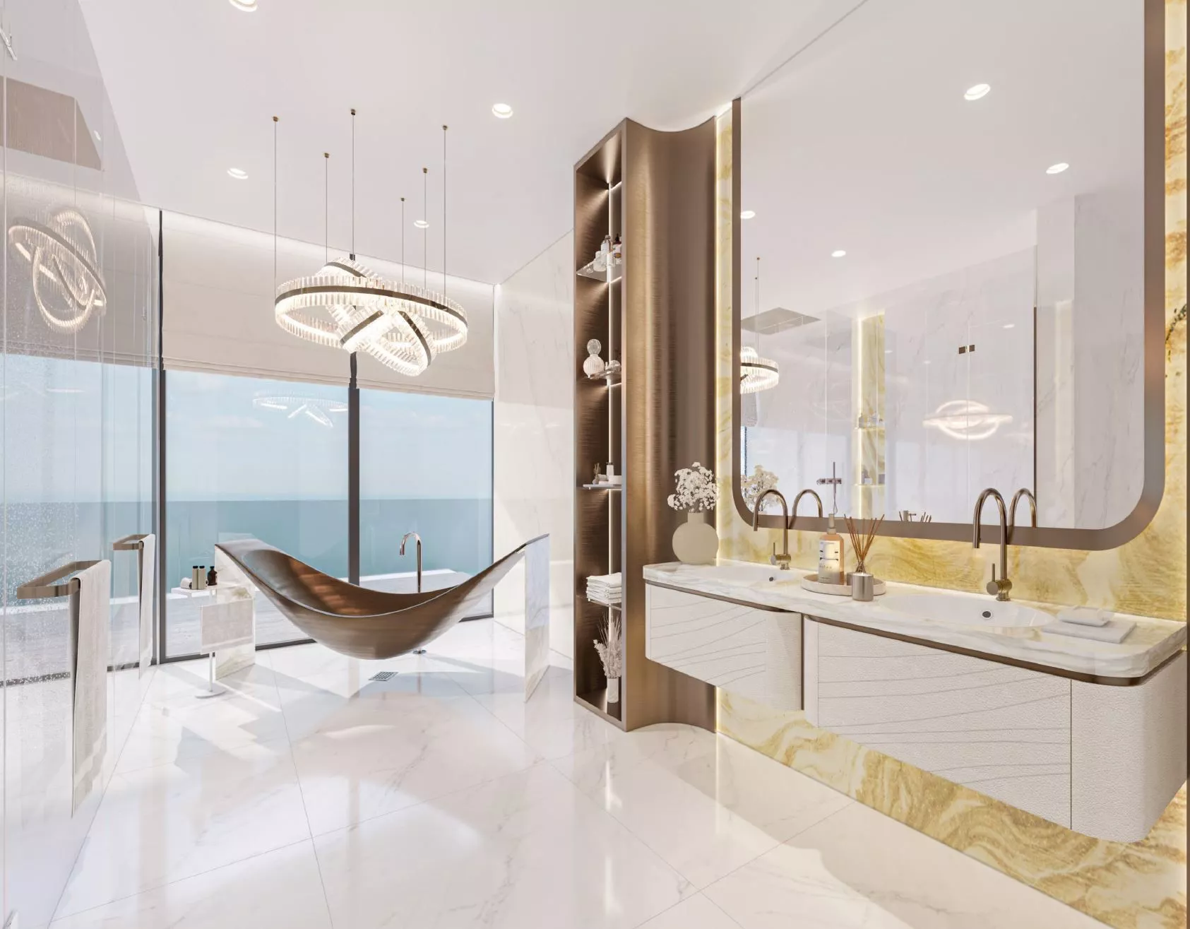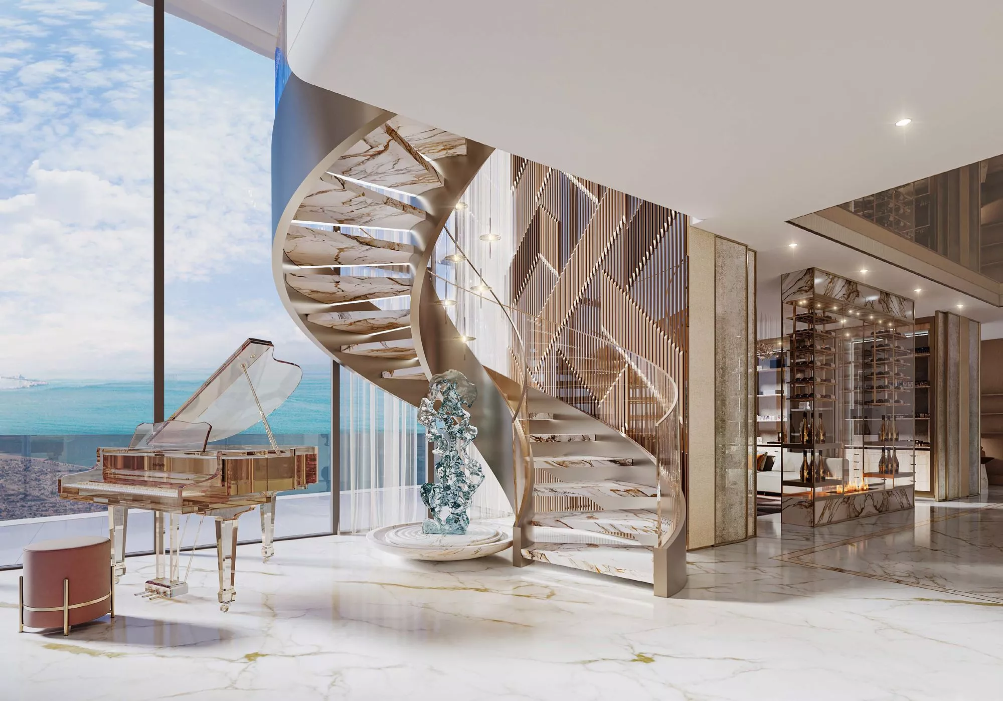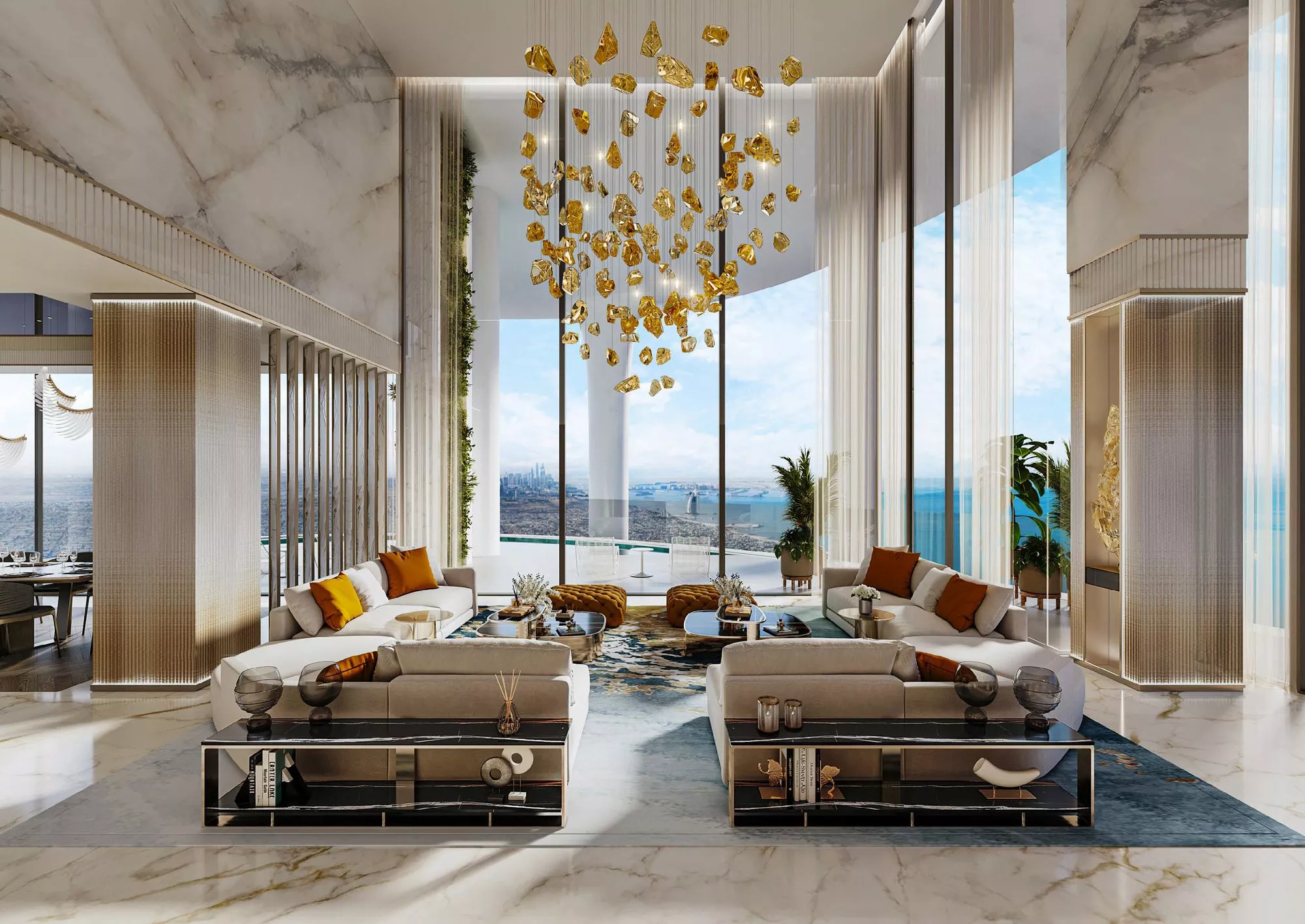 As of Q1 2024, an apartment and a penthouse can be acquired for a minimum of 2.16M (USD 588K) and AED 56.37M (USD 15.3M), respectively.