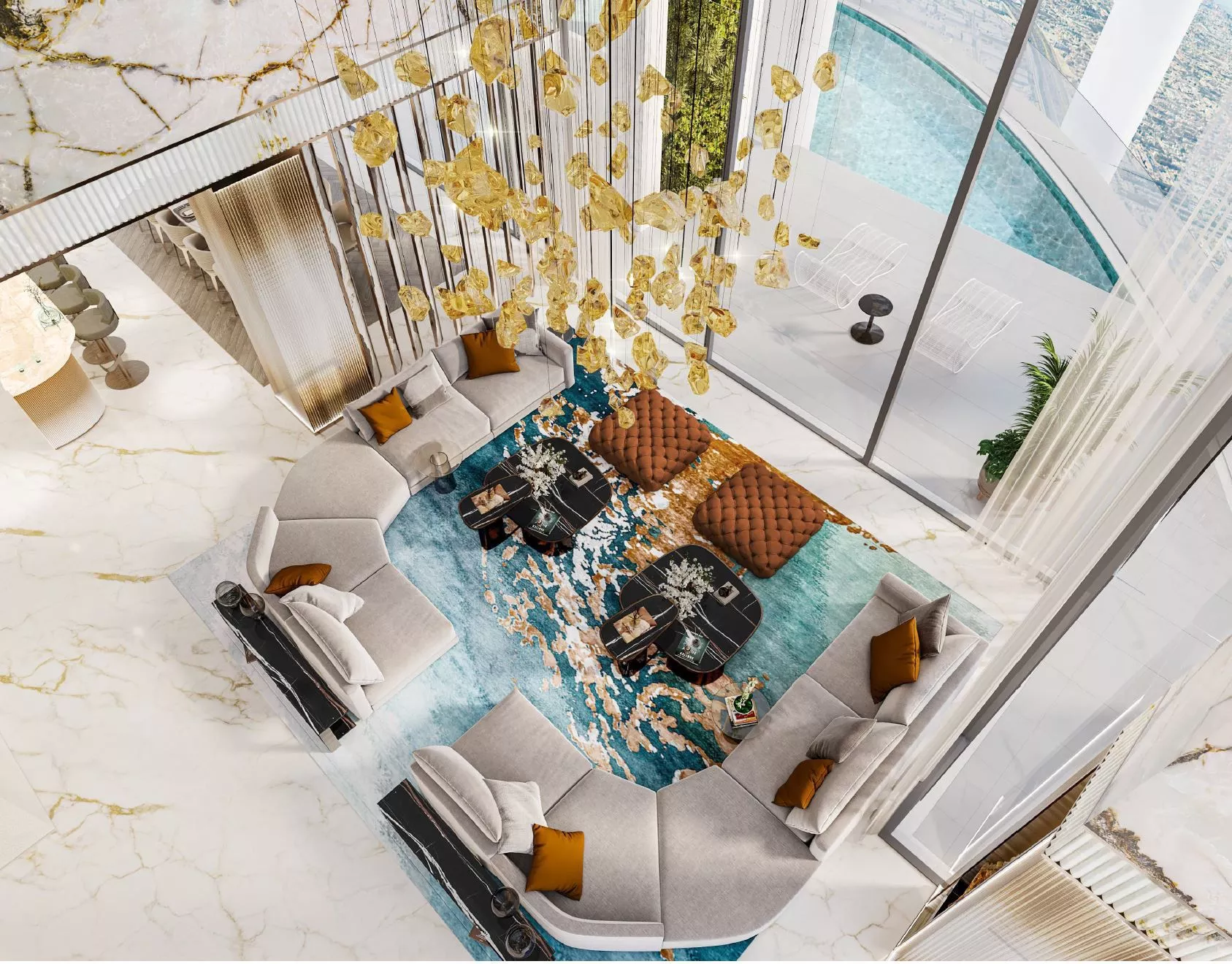 There is a meticulously crafted collection of 1-3 bedroom ‘luxury’ apartments, 2-bedroom podium townhouses and 4-5 bedroom ‘super-luxury’ duplex penthouses on offer. You can also consider investing in one of the available full floors. In total, there are 626 units for sale, ensuring a wide range of choices to cater to your specific needs. Property sizes range from 813 sq. ft to an expansive 9,437 sq. ft.
