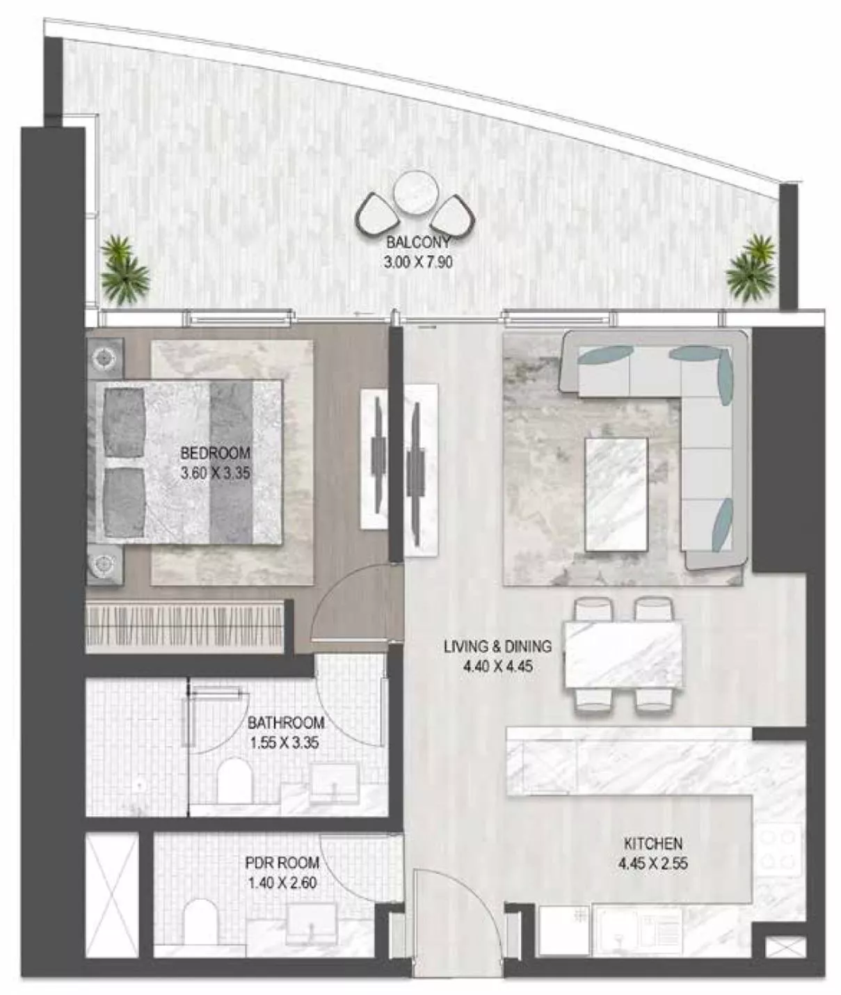As of Q1 2024, an apartment and a penthouse can be acquired for a minimum of AED 2.16M (USD 588K) and AED 56.37M (USD 15.3M), respectively.