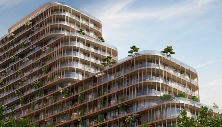 HADO by Beyond is the first residential development in SIØRA on Dubai Islands, consisting of three 21-storey towers connected by a shared landscaped base with gardens, courtyards, and reflection pools. The project offers 1–3BR residences, 3BR and 4BR duplexes, and select 4BR simplex homes ranging from 71.3 sq.m to 444.3 sq.m. Inspired by the Japanese philosophy of Ikigai — balance, harmony, and purposeful living — the project follows a disciplined approach to proportion, clarity, and calm spatial flow. Defined by a generous 3.2-meter floor-to-ceiling height, the design uses natural stone, wood, and marble, along with corner glazing that opens wide views of the sea, cove, and city. Completion is scheduled for Q3 2029.