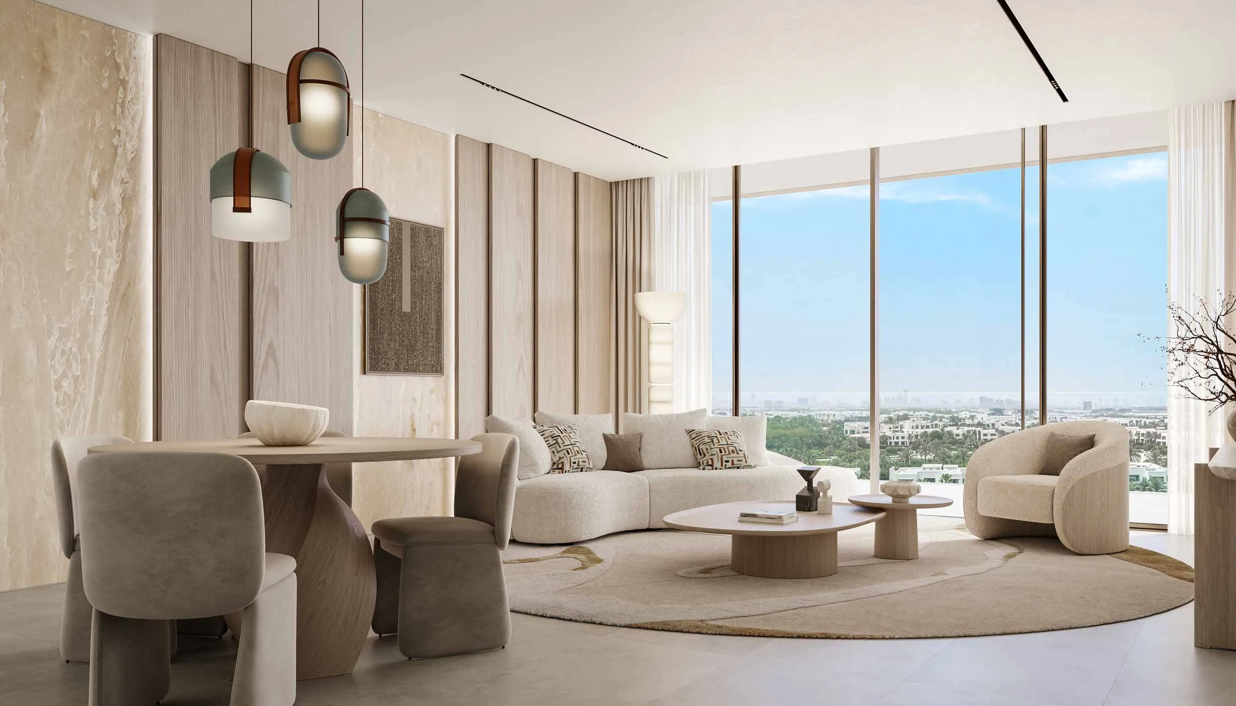 Selected units offer views of the open sea, cove, or Dubai skyline.
