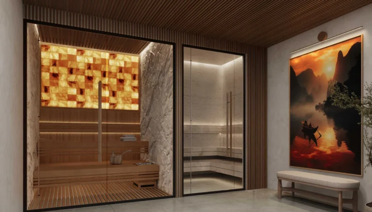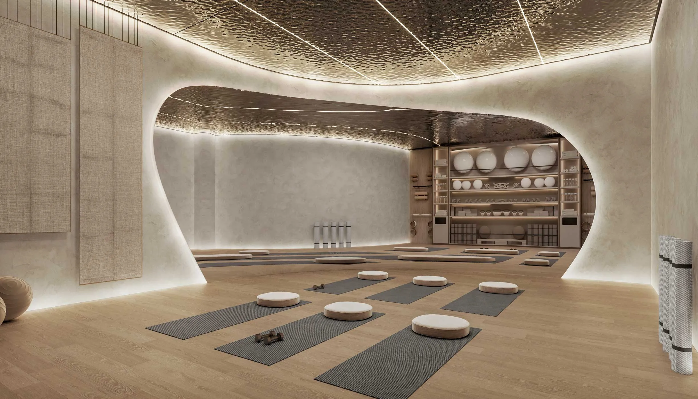 Dedicated spaces designed for mindful movement, daily rituals, and relaxation, supporting the project’s Japanese-inspired approach to balance and well-being.
