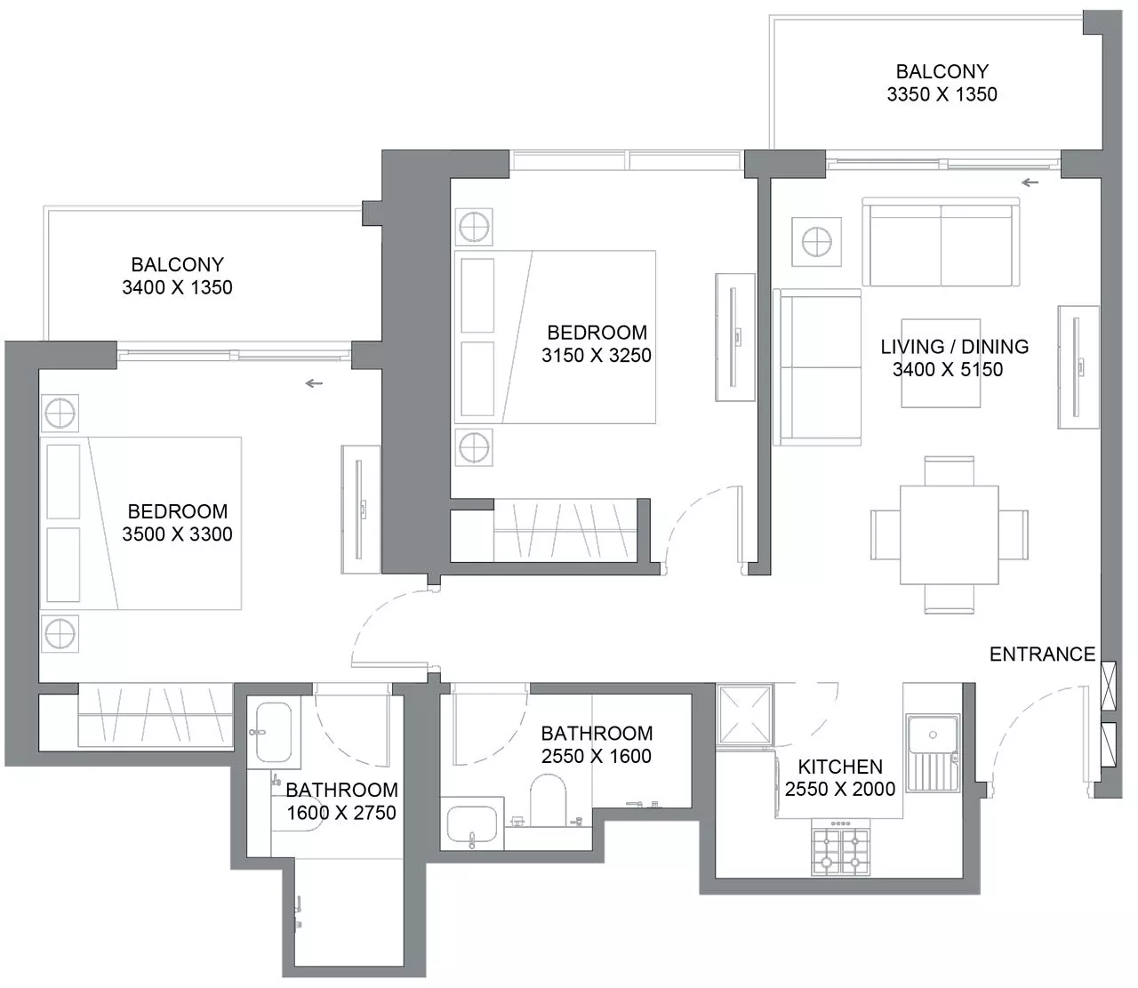 There are 1, 1.5 and 2-bedroom apartments on offer.