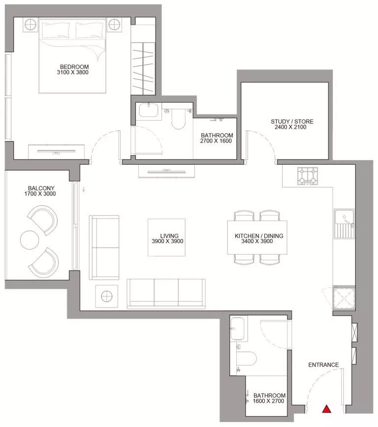 The starting price for a 1-bedroom property in Skyscape Altius is AED 1.7M (USD 462K).