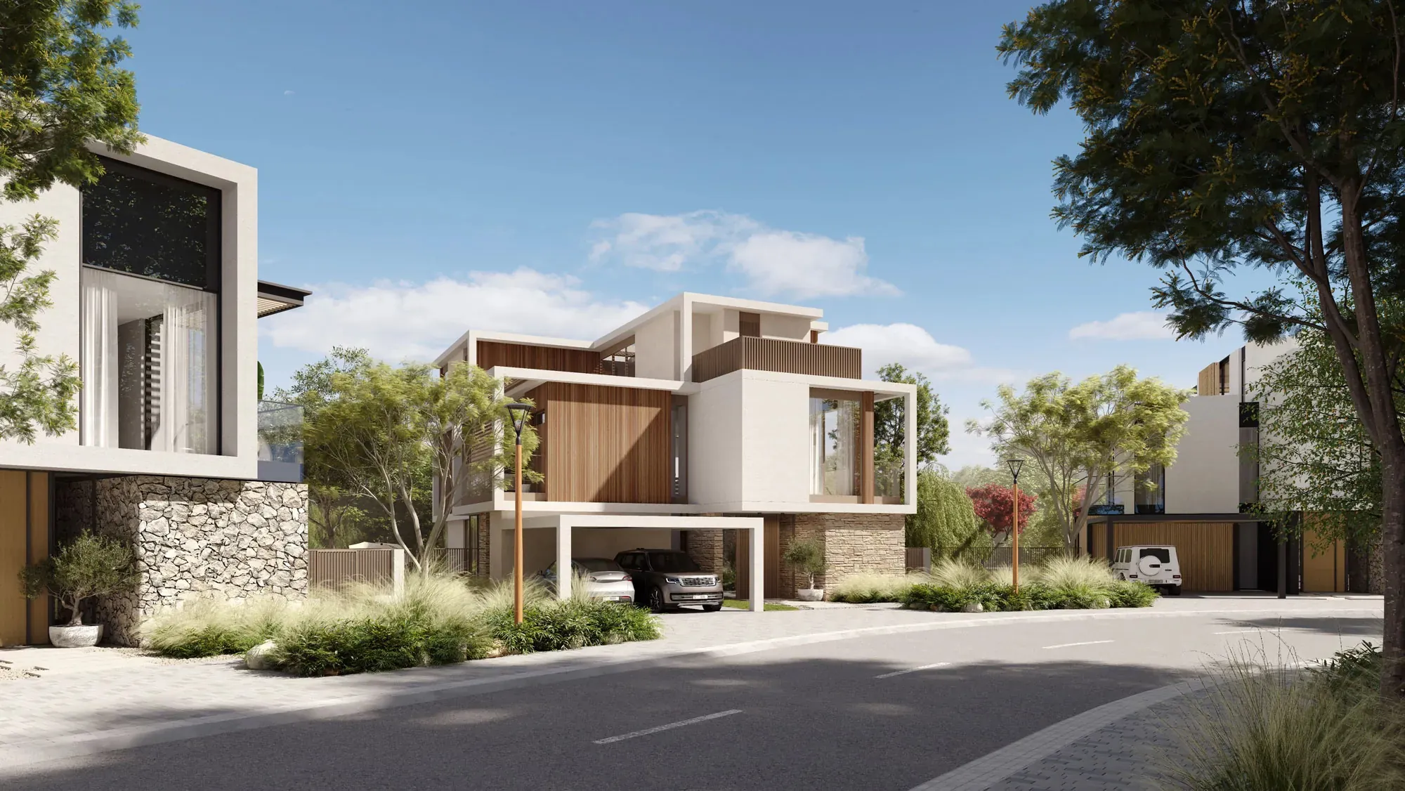 The Acres Phase 1 includes 642 properties featuring standalone villas with 3 to 5 bedrooms. Each villa offers parking for 2 vehicles, a shaded terrace, rear gardens, a dedicated family zone, and a private swimming pool. With double-height living spaces and panoramic windows, these homes provide an expansive and comfortable living experience.