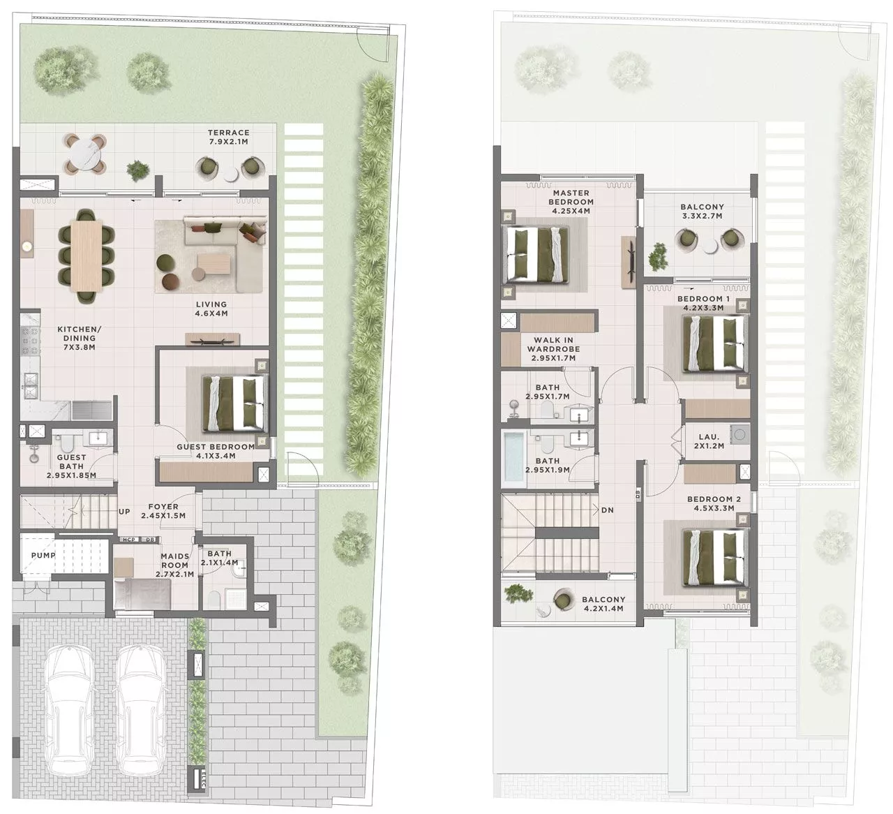Since the starting cost of Nima townhouses exceeds AED 2M (USD 545K), you will become eligible for a 10-year Golden visa. This applies not only to your spouse and children, but also to domestic staff.