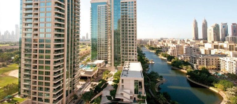 The Fairways, completed in 2008, is a complex that includes three towers. The West Tower has 35 floors, and the North and East Towers have 30 floors each. The buildings are united by common facilities, including a landscaped pool, gym, and children’s playground. The annual rental cost for a two-bedroom apartment, with an area of 128 sq. m (1,378 sq. ft), is AED 145,000 (USD 39,476). The purchase price of a unit starts at AED 2,100,000 (USD 571,731).