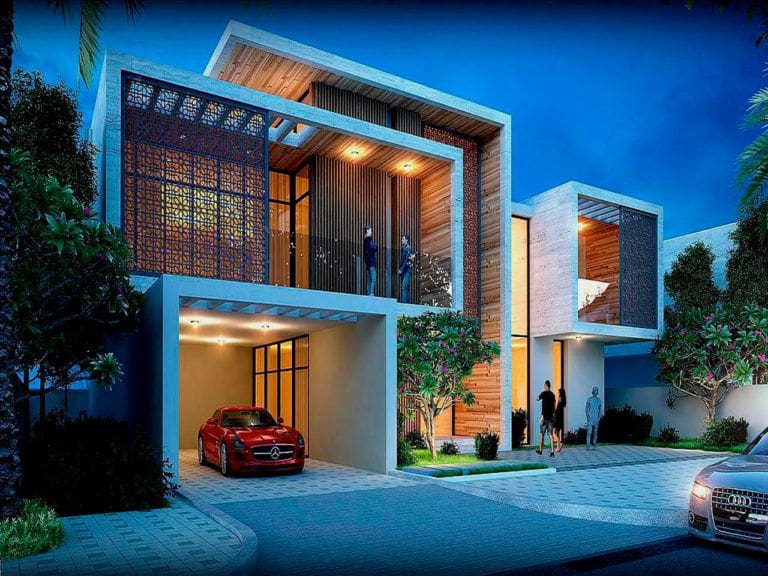 Tilal City Zone C is home to Naseem Villas and Almass Villas. Properties include two-storey villas and townhouses that were designed using a post-modern architectural style. Naseem Villas only offers plots of land at the moment, which cover an area of approximately 4,000 sq. ft. Plots have an average price of AED 600,000 (USD 160,000). Almass Villas offers townhouses that cover an area of 3,605 sq. ft. and have a price of approximately AED 2,200,000 (USD 600,000).
