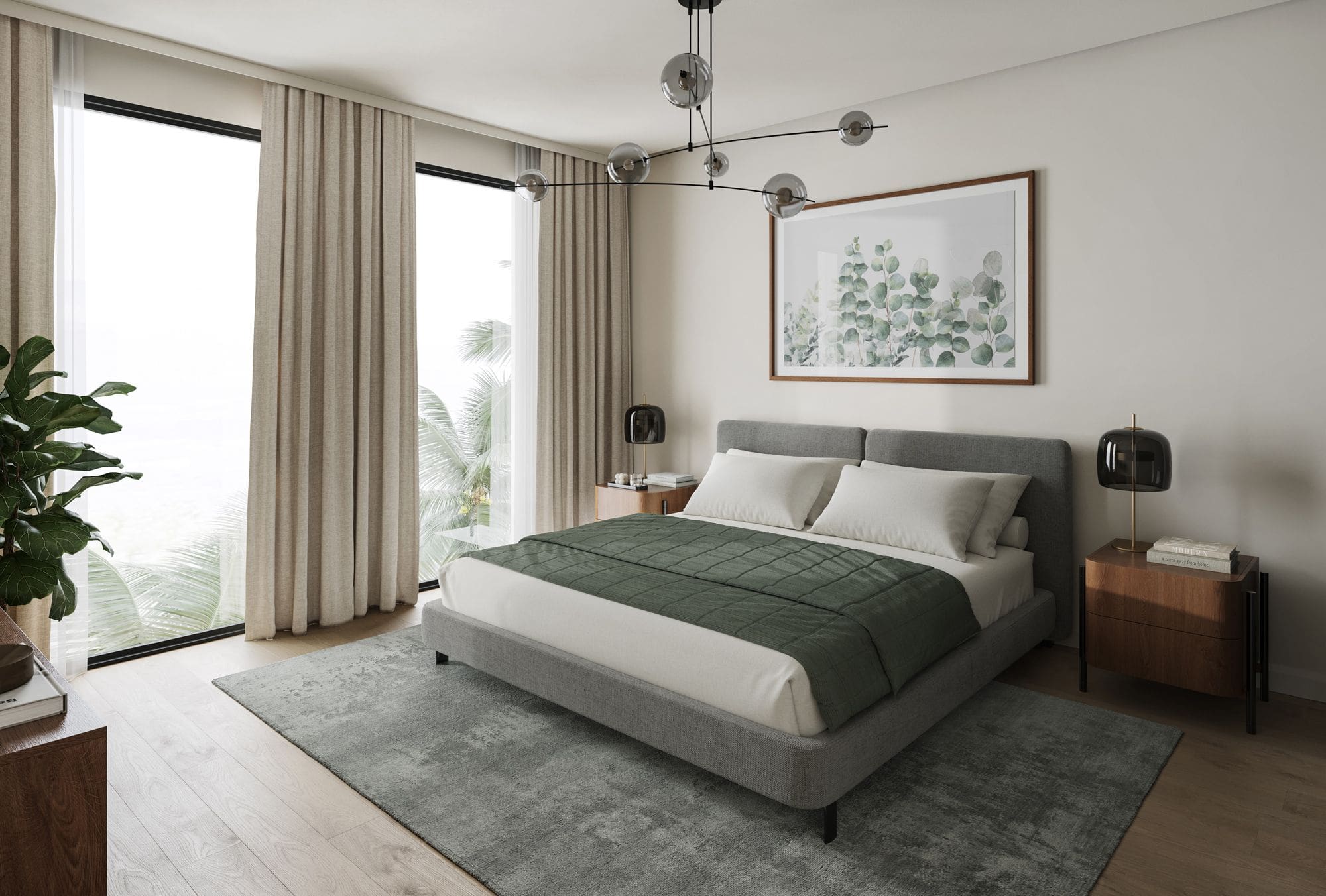The residences will come with fully fitted kitchens, which will have state-of-the-art appliances, stain-proof prep counters, overhead cabinets and glazed porcelain flooring. The bedrooms will be furnished with glazed porcelain floors and in-built wardrobes, whilst the master bedrooms will include an en-suite bathroom. In terms of the layouts, residents will enjoy private balconies overlooking luscious greenery. The owners of the 3-bedroom units will additionally have a laundry room and a storage room at their disposal.