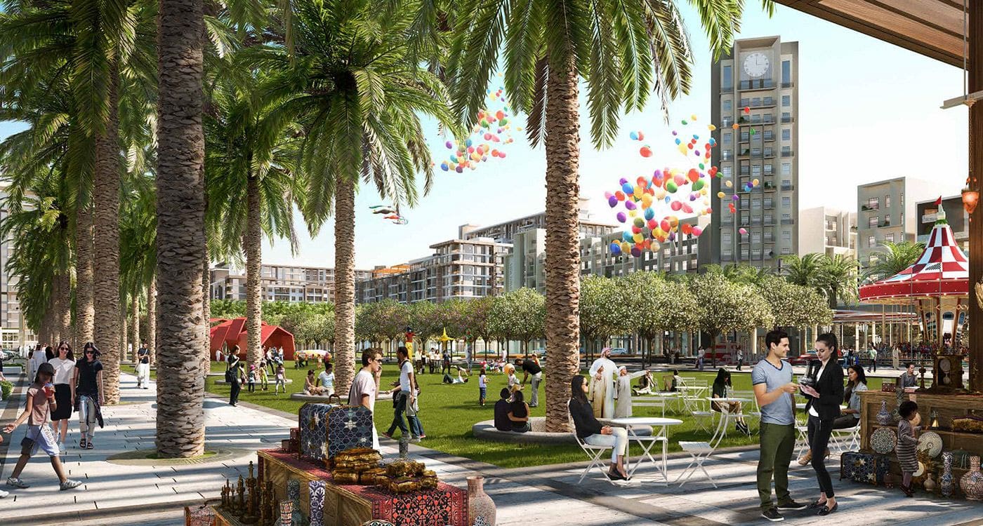 Town Square is located in the southern part of Dubailand. Residents have easy access to Emirates Road, Al Qudra Road, and Jebel Ali Road, which provide direct routes to other parts of the emirate. The nearest bus stop can be reached within walking distance of the apartments, and Dubai International Airport is situated within a 30-minute drive.