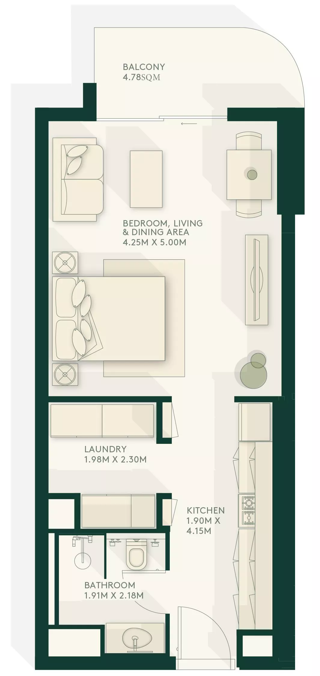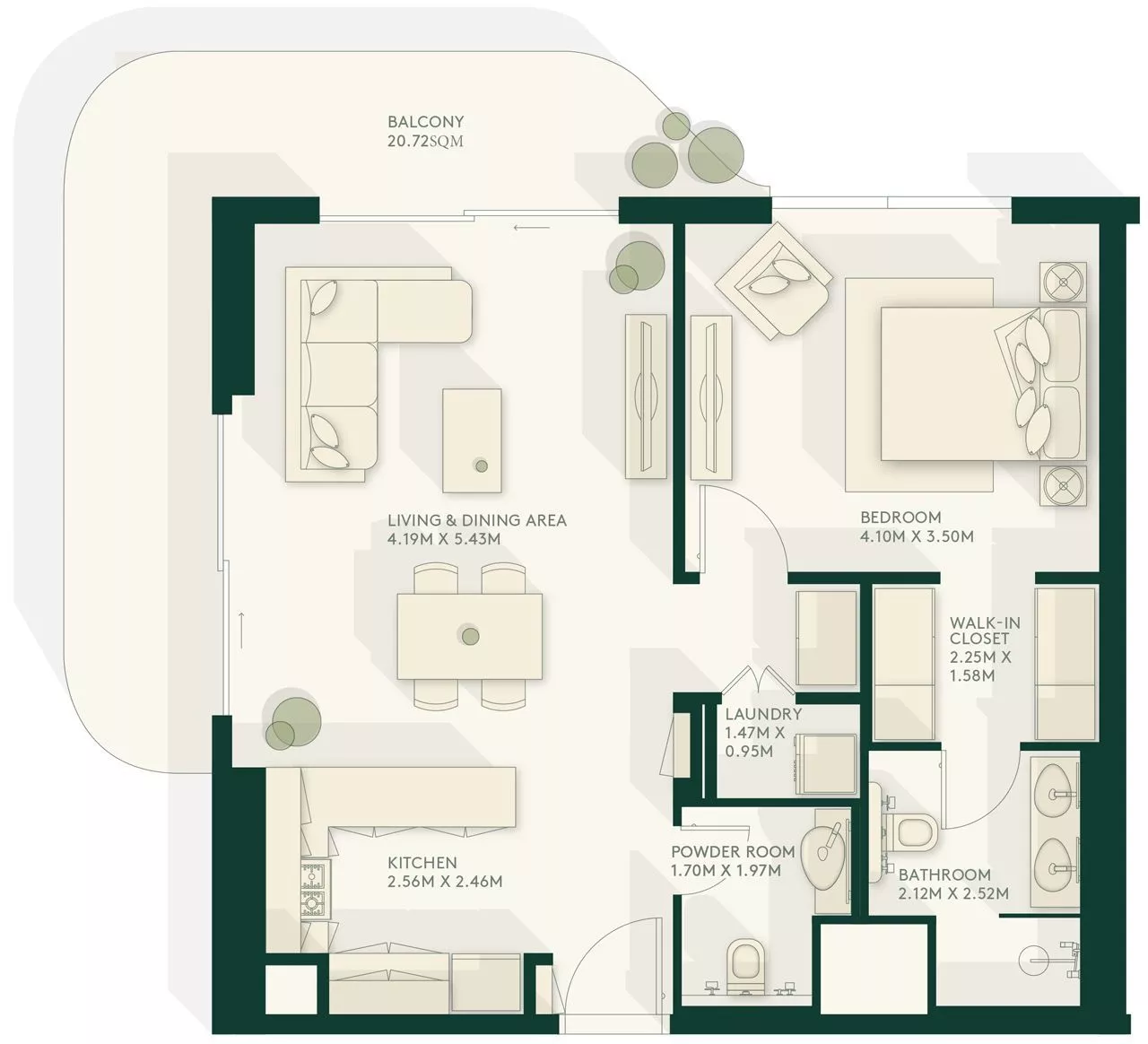 Purchasing a residence in the waterfront community of Gardenia Bay will be a profitable investment, as the project is distinguished by its strategic location within the main entertainment hub of Abu Dhabi on Yas Island. It will attract tourists who want to seek a property to rent within close proximity to the island’s attractions. The starting rental price for a 1-bedroom apartment in the area constitutes AED 50K (USD 14K) per year. As of 2023, the average ROI for properties on Yas Island is 6.4%.
